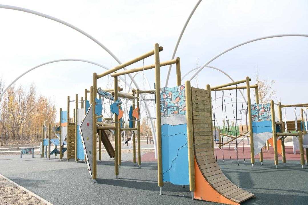 Қазіргі таңда саябақ аумағында ауқымды абаттандыру және инфрақұрылымдық жобалар жүзеге асырылуда. Бас мердігер «Bi Global» ЖШС жобаға сәйкес 3 аллея, 6 субұрқақ, 5 амфитеатр, 7 балалар ойын алаңын, 4 спорт және 4 workout, 7 демалыс аймағын, 4 фудкорт, теннис үстелдерін, биіктігі 50 метр болатын айналмалы дөңгелек аттракцион, би алаңын, стритбол, вело және жүгіру жолақтарын, сахна, сарқырама каналдары мен олардың үстінен өтетін көпірлер, шахмат, баскетбол және футбол алаңдарын, арқан саябағы мен модульдік санитарлық нысандар орналастырмақ.Саябақта жылдың төрт мезгілінде үздіксіз жұмыс істейтін 300 орындық заманауи балалар тынығу лагері мен Ботаникалық білім беру орталығы (қысқы бақ) бой көтеріп келеді. Бұл нысандардың бас мердігері «Alem Qurylys AQ» ЖШС осы аумаққа спорт блогын, іс-шараларға арналған event-аймақ, тұрғын корпустар, қонақ үй үлгісіндегі шағын ғимараттар, дәстүрлі киіз үйлер, ашық бассейн, стадион, футбол алаңы және сахна салуды қарастырған.