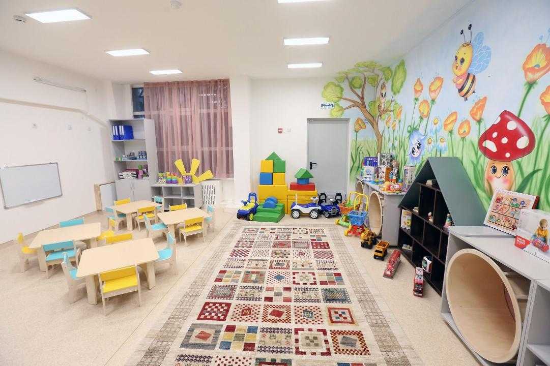 Екі қабатта әртүрлі жас топтарына арналған топтық бөлімдер орналасқан. Әр топтың жанында киім шешетін бөлме, жатын бөлме, буфет және санитарлық торап қарастырылған. Қосымша сабақтар музыкалық залда өткізіледі.