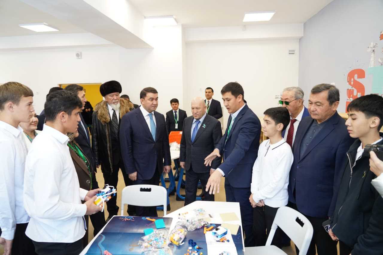 – Бүгін Мақтаарал өңірінде сүйінші жаңалық болып жатыр. Ауданда тағы да заманауи мектеп бой көтеріп, оқушыларға есігін айқара ашты. Бұл – мемлекетіміздің білім мен ғылымға бағытталған стратегиялық саясатын көрсететін мәні зор оқиға. Мемлекет басшысы Қасым-Жомарт Кемелұлы Тоқаевтың бастамасымен жүзеге асырылған «Келешек мектептері» ұлттық жобасы – еліміздің интеллектуалдық әлеуетін арттыруға бағытталған бағдарлы қадам. Мақтаарал ауданында ашылып отырған 1500 орындық жаңа мектеп – ауылдағы балаларға жасалған үлкен қолдау. Бұл заманауи білім ордасында оқушылардың терең білім алуына, шығармашылықты дамытуына барлық жағдай жасалған. Мұнда келешектің ойлы, парасатты және бәсекеге қабілетті жастары тәрбиеленеді. Бұл мектеп – тек оқу орны ғана емес, жас ұрпақтың азамат болып қалыптасатын айбынды ордасы. Мақтаарал – еңбекқор халқы бар, қарқынды дамып келе жатқан қасиетті мекен. Бүгін бой көтерген жаңа білім ұясы – осы өңірдің адами капиталын жақсартып, ұстаздар мен оқушыларды жаңа белеске жетелейді. Бізге білімді, отаншыл, рухы биік, жаңашыл буын керек. Міне, жаңа мектеп сол асыл міндетті орындауға қызмет етеді. Бұл – ұлт болашағына салынған инвестиция. Сондықтан ұстаздарымыз үнемі ізденіп, сапалы білім берулері керек. Сіздерді жаңа мектептің ашылуымен шын жүректен құттықтаймын! Мақтааралдың білімге құштар жастары ғылым мен мәдениеттің биік шыңдарын бағындырып, елге қызмет ете берсін! – деді облыс басшысы Нұралхан Оралбайұлы.