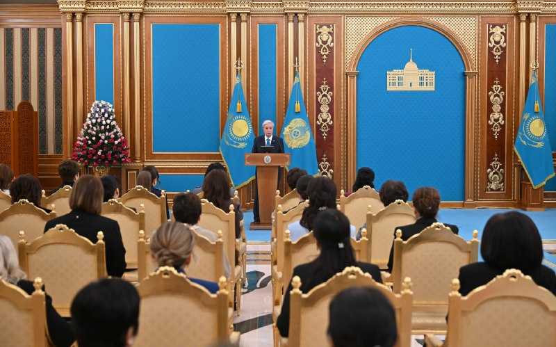 Президент мерекелік жиында Қазақстанның әлеуметтік-экономикалық және мәдени дамуына елеулі үлес қосып, өз кәсібінде жоғары табысқа жеткен әйелдерді мемлекеттік наградамен марапаттады.