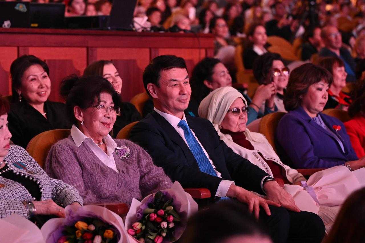 Салтанатты жиынға мәдениет, білім беру, медицина, энергетика, кәсіпкерлік және қоғамдық қызмет салаларында еңбек етіп жүрген әйелдер шақырылды. Концерттік бағдарламаны әнші Мәдина Садуақасова «Салтанат» мемлекеттік би ансамблімен бірге орындаған «Мен қазақ қыздарына қайран қалам» атты театрландырылған композициямен ашты. Сонымен қатар IL Canto тобының орындауындағы музыкалық нөмірлер мен «Жаңа ғасыр» театры актерлерінің «Әйел — шексіз әлем» атты поэтикалық қойылымы көрермен назарына ұсынылды.
